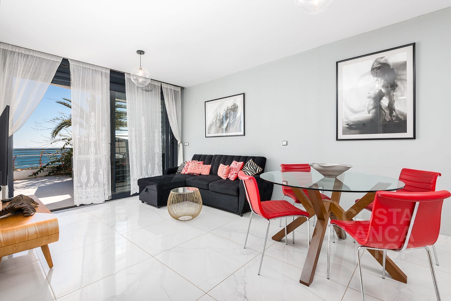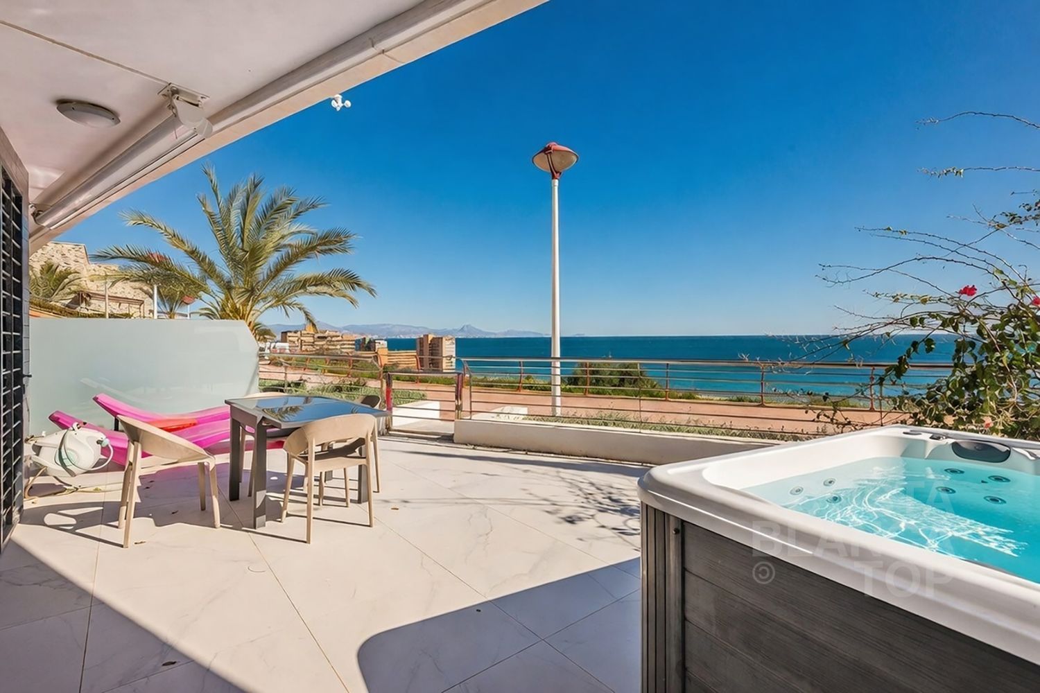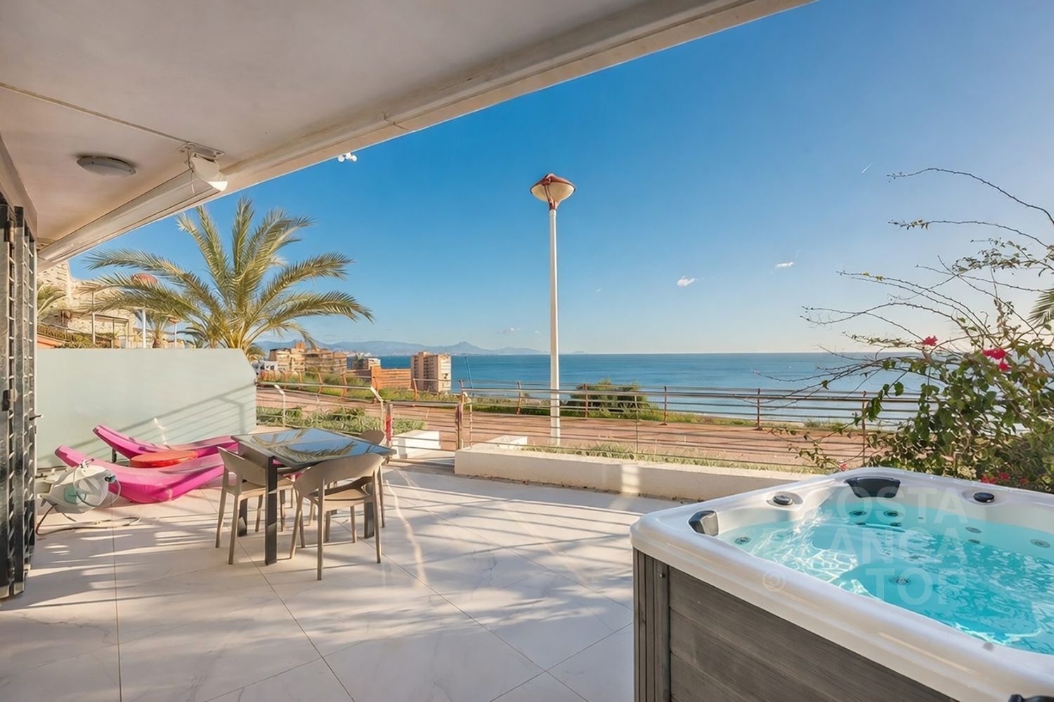 Unendliche Ausblicke – Panorama-Blicke aufs Meer und privater JacuzziExklusive Wohnung im begehrten Infinity View, Arenales del Sol, die atemberaubende Panoramablicke aufs Mittelmeer von beiden Schlafzimmern, dem Wohnzimmer und der großzügigen Terrasse bietet.Genießen Sie Ihren privaten Jacuzzi mit Blick auf den Meereshorizont – der perfekte Ort zum Entspannen und Abschalten das ganze Jahr über. Die Immobilie ist elegant eingerichtet und verfügt über ein helles offenes Raumdesign mit großen Glasfronten, die das natürliche Licht und die Meerblicke maximieren.Objektmerkmale:2 Schlafzimmer mit Meerblick2 BäderGroße Terrasse mit privatem JacuzziInklusive AbstellraumKomplett möbliert zu verkaufenInfinity View ist eine erstklassige Wohnanlage, die Resort-ähnliche Annehmlichkeiten bietet:Mehrere AußenpoolsInfinity-Pool (außen) mit MeerblickAußen-Jacuzzi-Bereiche fitnessstudioSaunaPaddle-TfballplatzWunderschöne, gestaltete GärtenSichere und private GemeinschaftZu Fuß nur wenige Minuten zum beliebten Carabassi-Strand und nur 10 Minuten vom Flughafen Alicante entfernt.Eine perfekte Immobilie zum dauerhaft Wohnen, als Ferienimmobilie oder zur Investition.