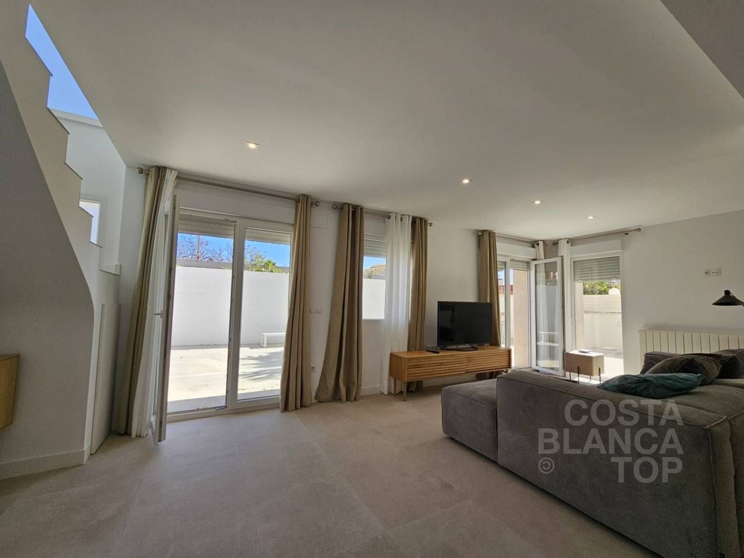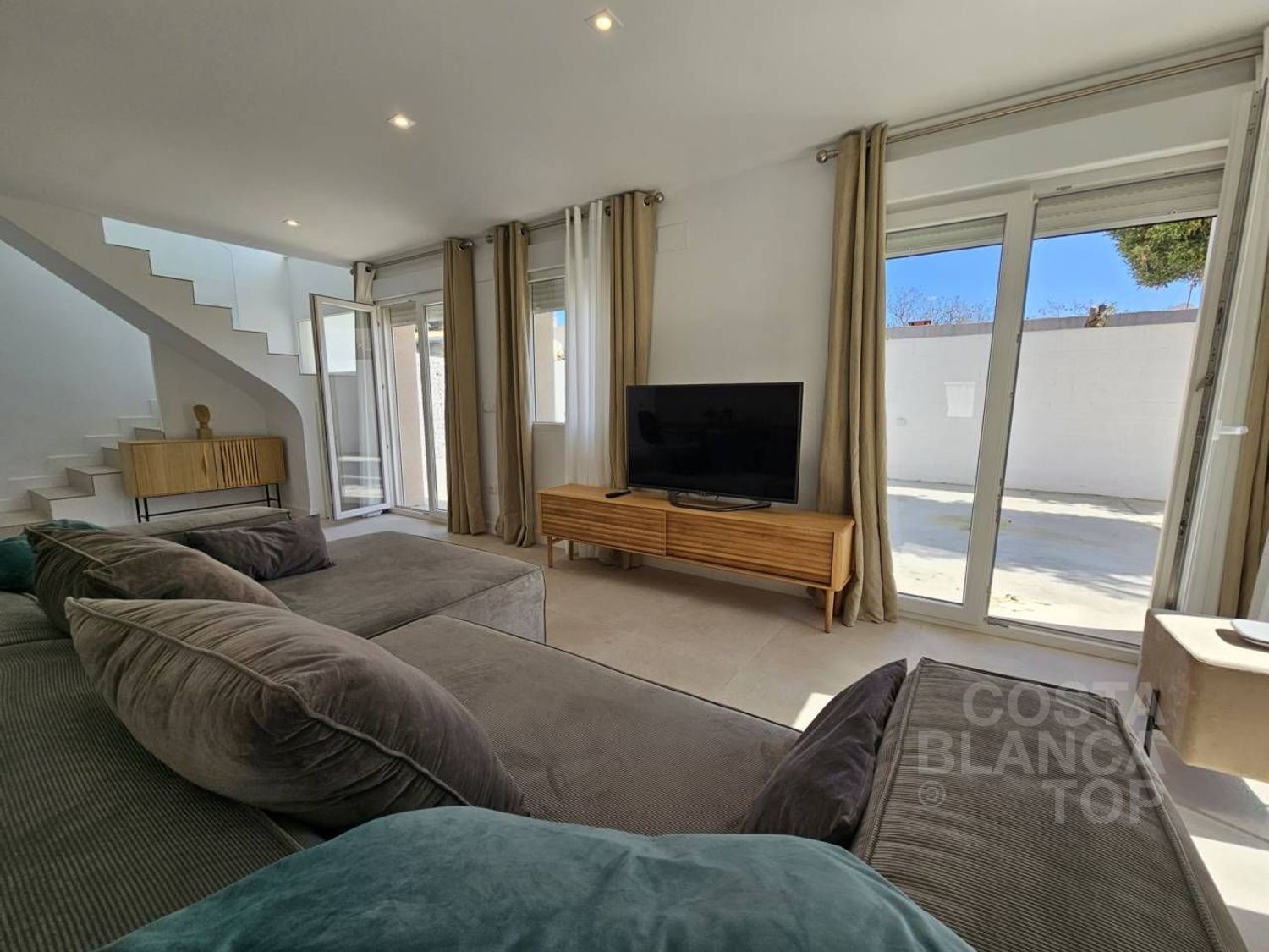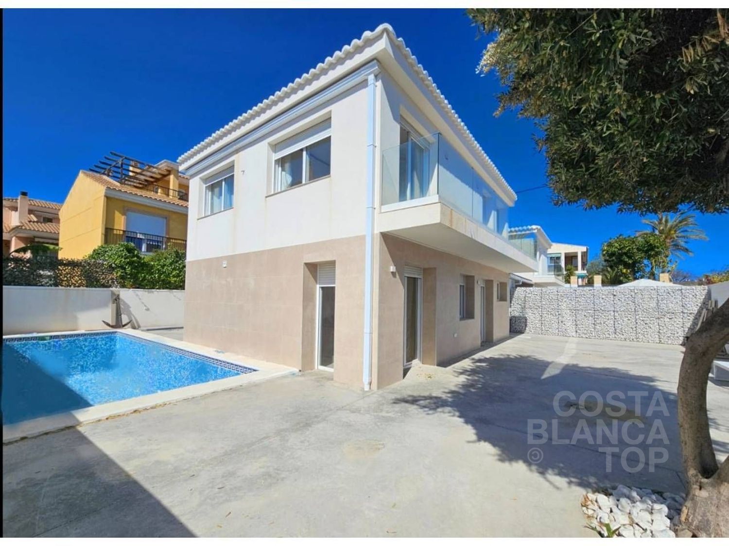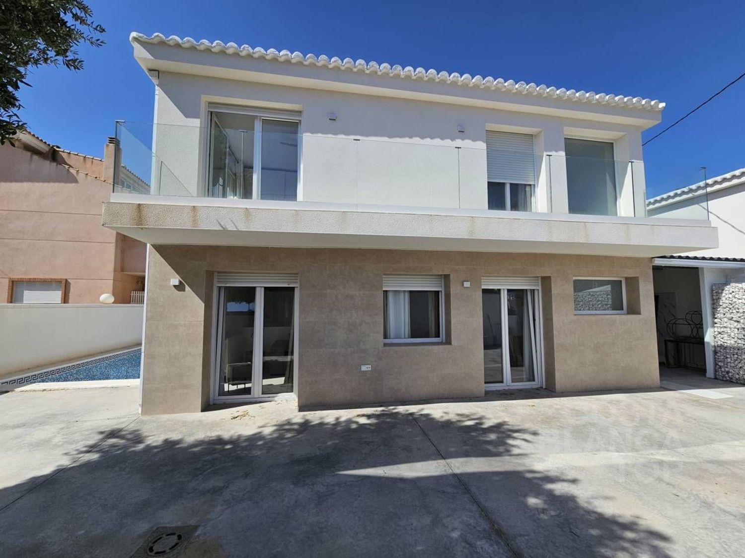PRECIOSA VILLA en alquiler se encuentra en CABO HUERTAS, Alicante - Alacant. Se trata de la zona residencial más exclusiva de Alicante, a un paso de las calas que rodean el Cabo de las huertas, en una zona muy tranquila pero al mismo tiempo a un paso de todos los servicios: supermercados, gimnasios, colegios, zonas ajardinadas, playas. un lujo para vivir junto al Mediterraneo! El precio reflejado en este anuncio corresponde para estancia de 1 año. Cuenta con una superficie total de 210 m² y 160 m² útiles, esta propiedad cuenta con 4 habitaciones, 1 habitación individual y 3 habitaciones dobles, 3 baños y 1 aseo. De reciente construcción, está todo a estrenar, nunca ha vivido nadie. Dispone de armarios empotrados, cocina americana, garaje para 2 vehículos, terraza tipo balcón largo soleado, piscina privada y mucho más. NO se aceptan mascotas. La zona de Cabo de la Huerta es conocida por sus hermosas playas, calas vírgenes y su entorno natural único. Ideal para los amantes de deportes náuticos y la tranquilidad, ofrece una combinación perfecta entre naturaleza y comodidades residenciales.
