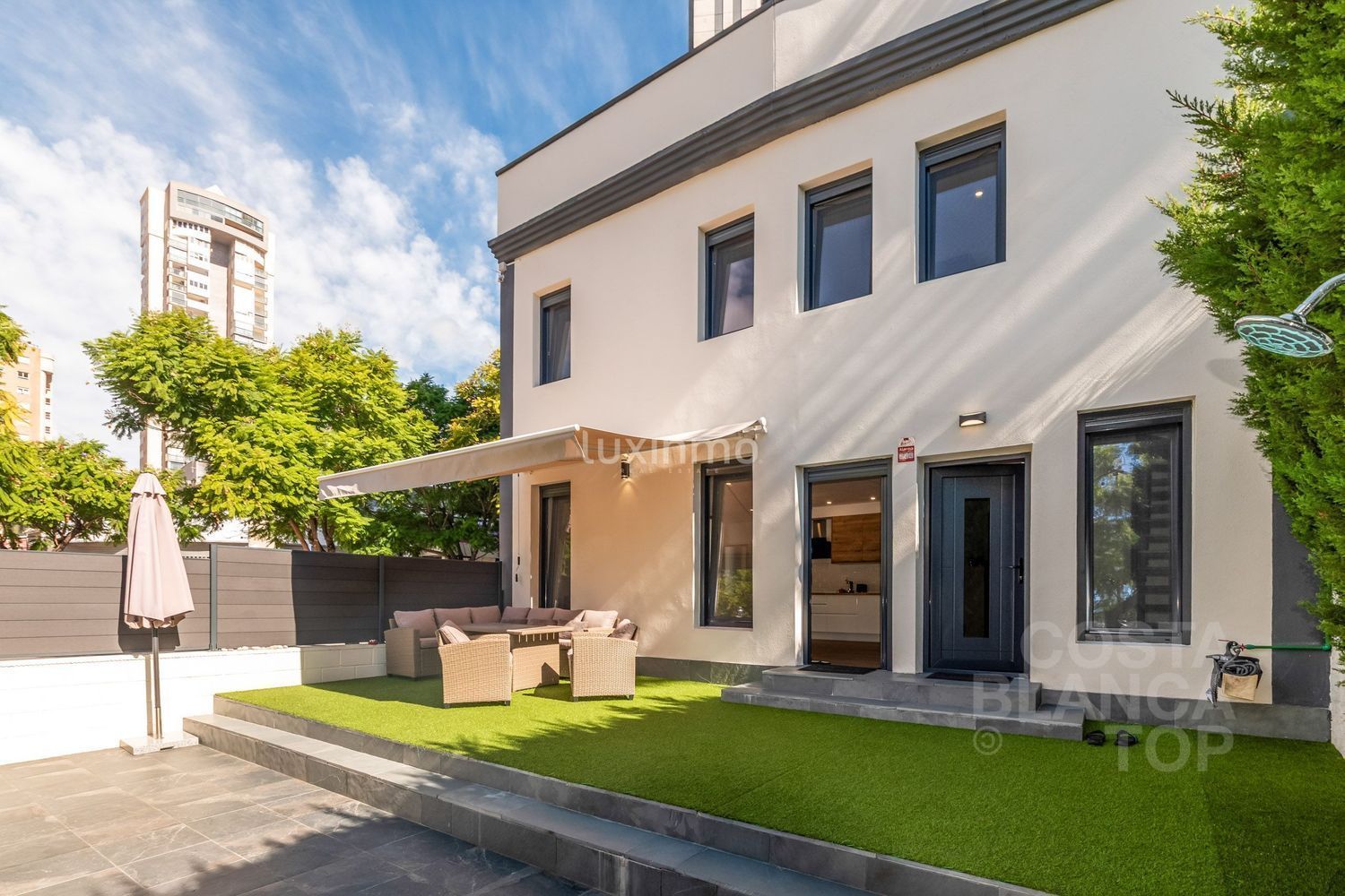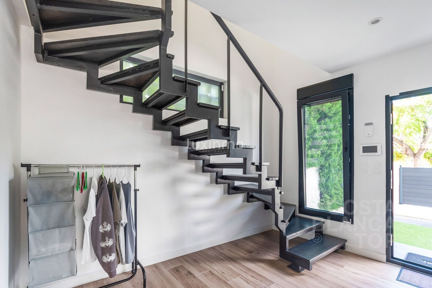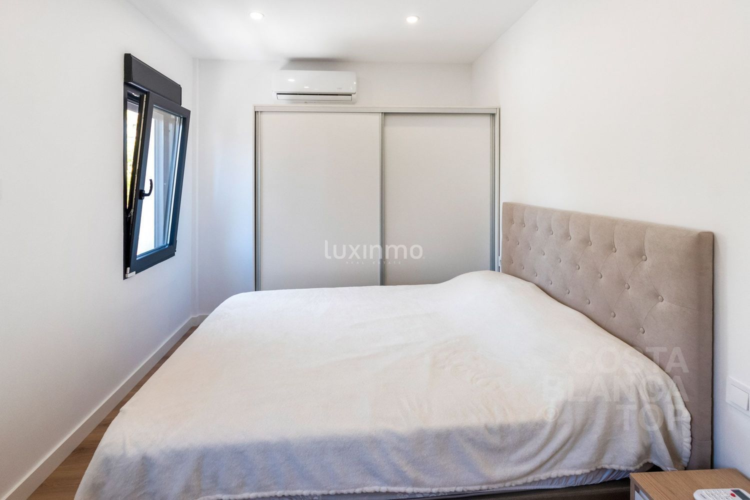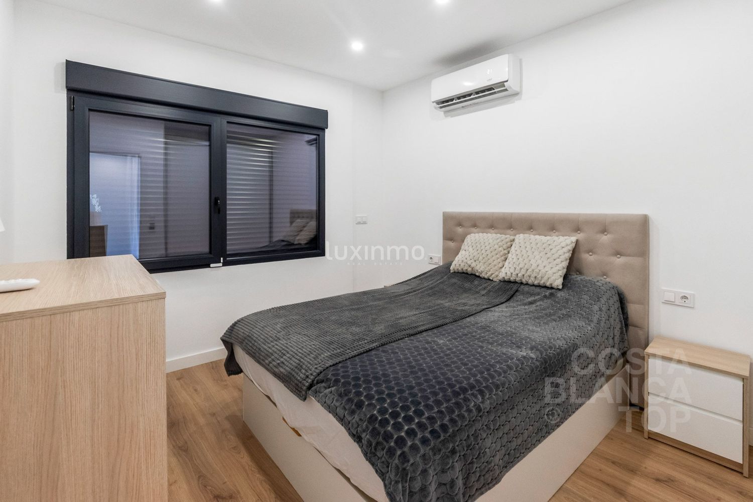 Otras características son las persianas eléctricas y las ventanas de doble acristalamiento, que garantizan la eficiencia energética y el aislamiento acústico de la propiedad.