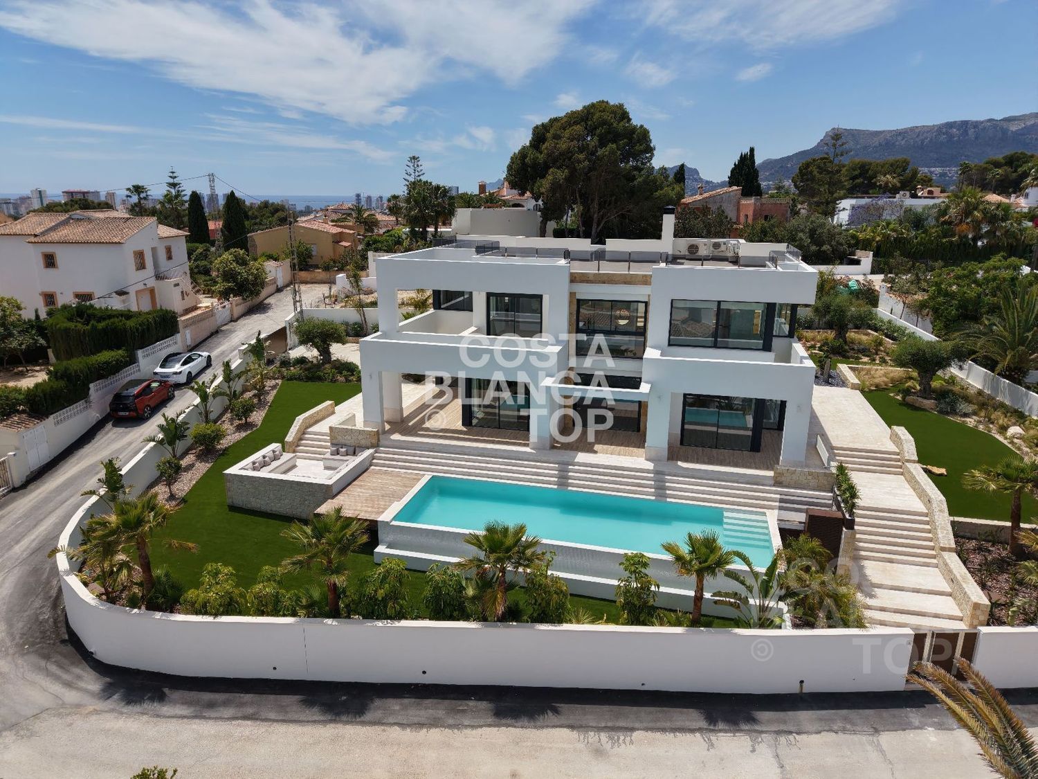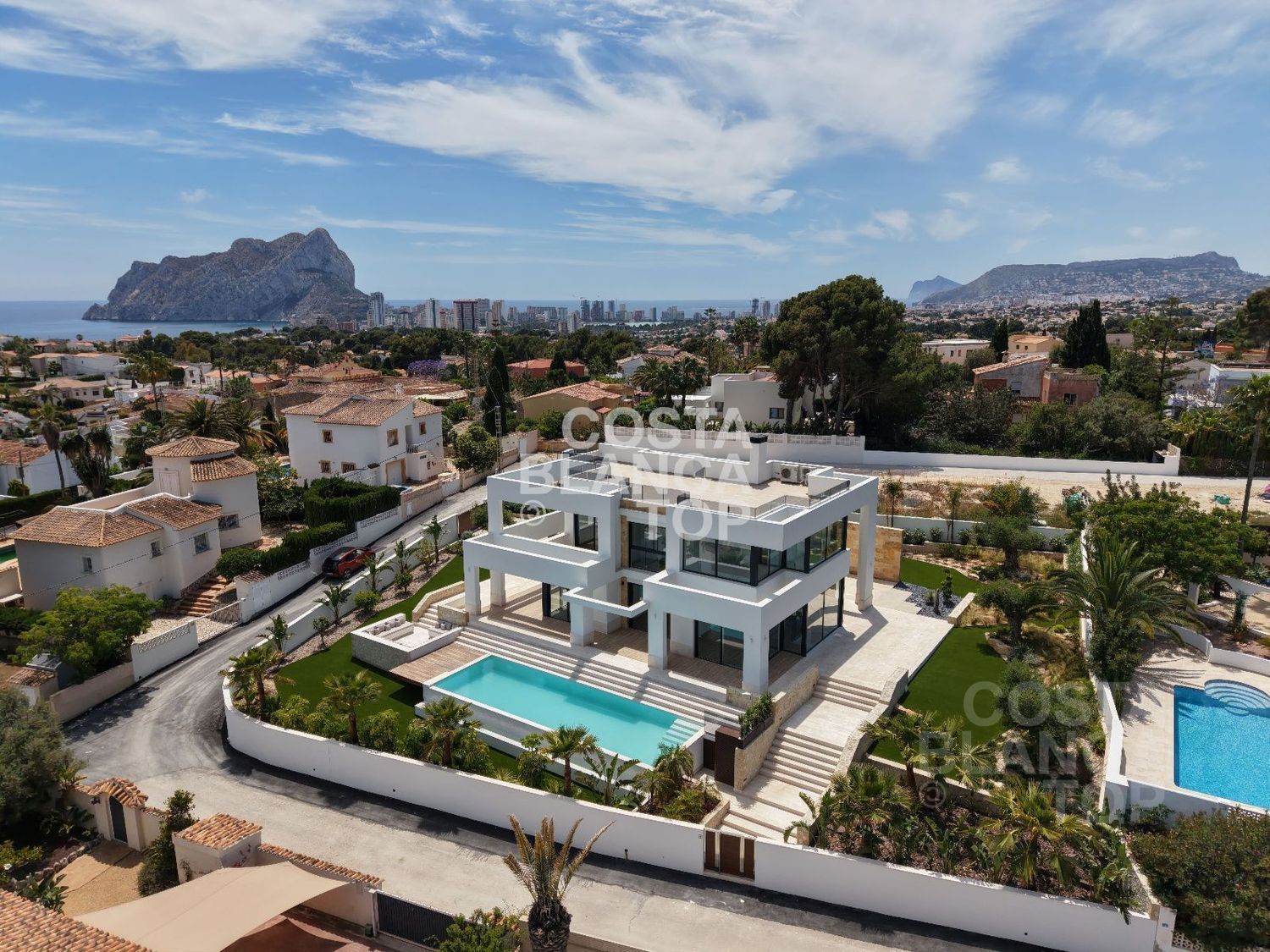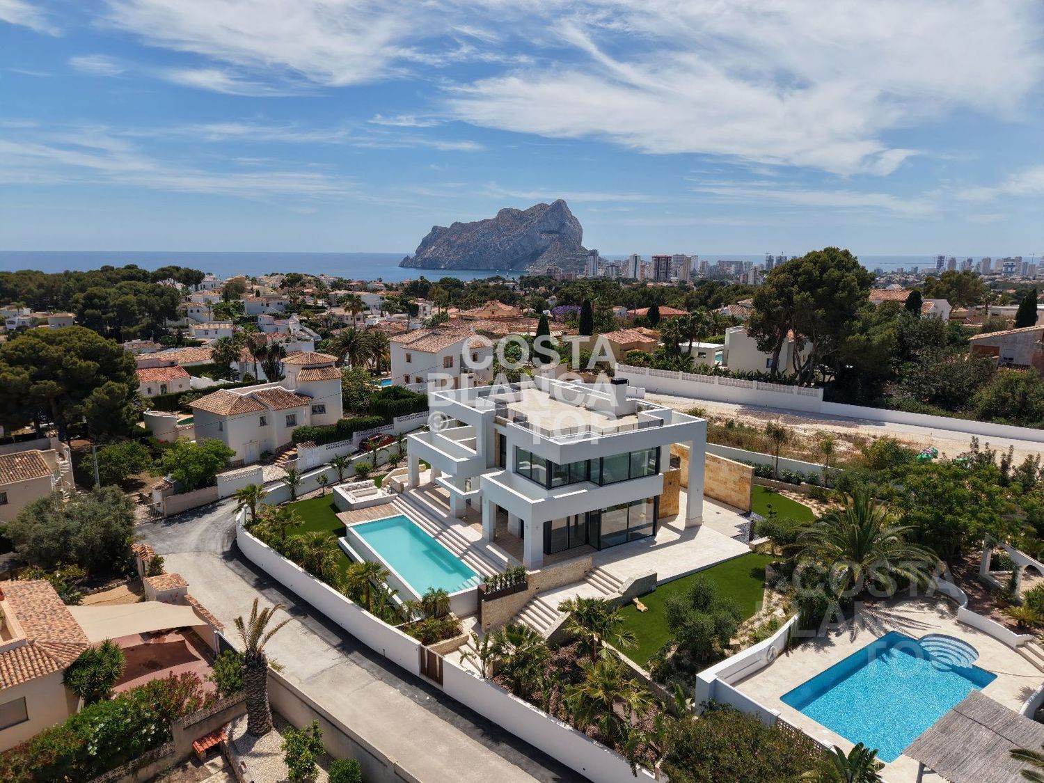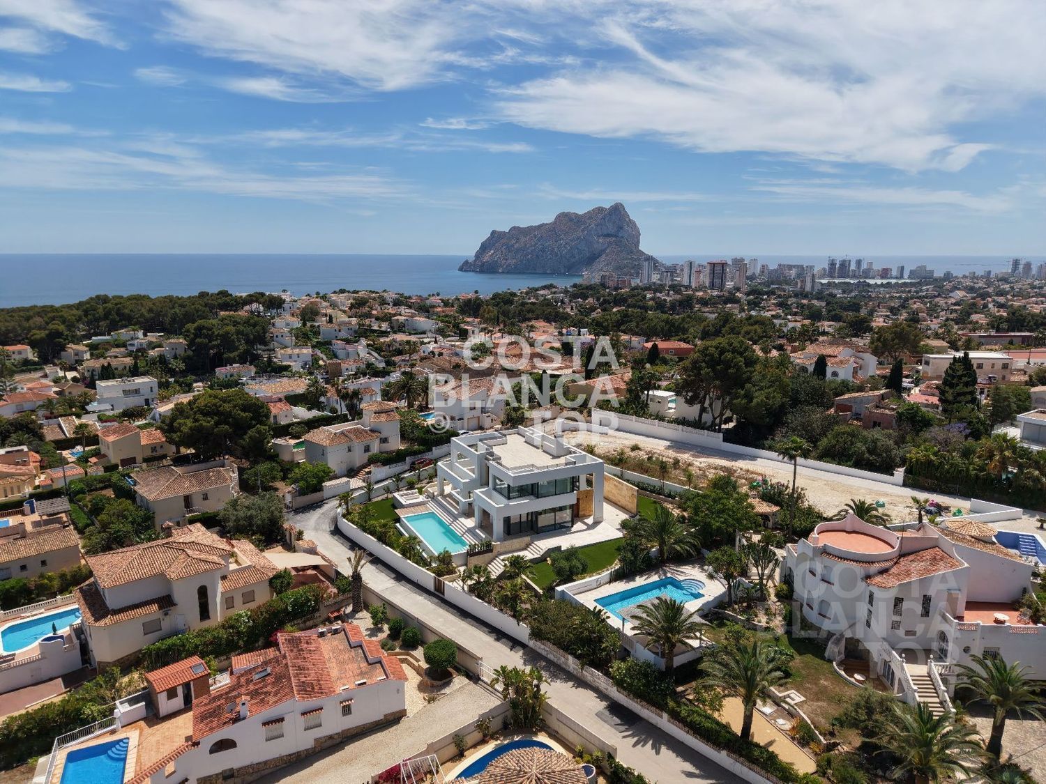Ubicada en una de las mejores urbanizaciones de Calpe, esta villa se alza sobre una parcela de 1.370 m², regalando una panorámica que te dejará sin aliento: el mar infinito, las nubes al amanecer, las luces del litoral al anochecer. Alrededor, campos de golf, playas, restaurantes, una infraestructura pensada para disfrutar con familia y amigos. A solo unos minutos se encuentra el prestigioso colegio británico Elizabeth School. Y el mar… está a solo 4 minutos en coche.