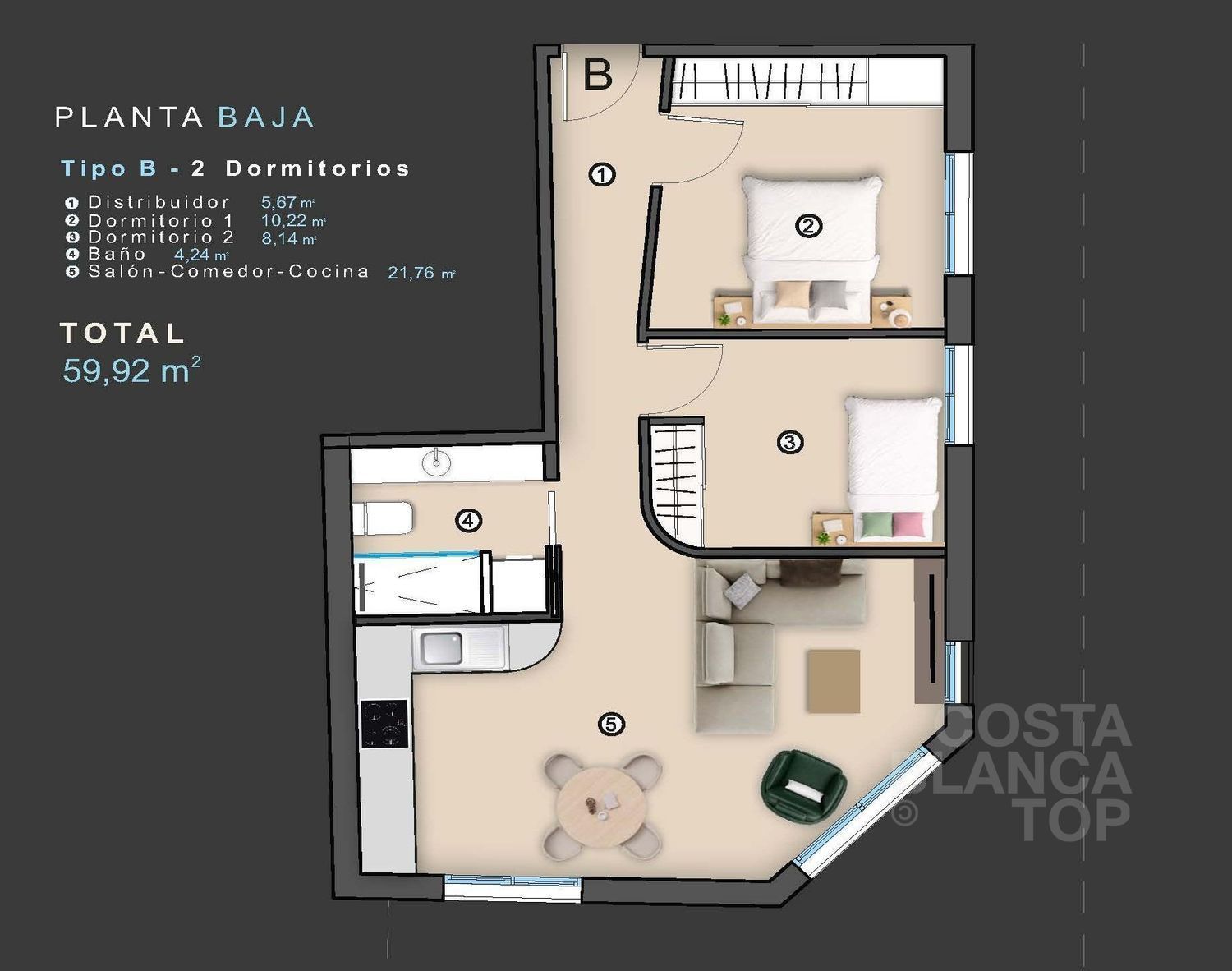 Este exclusivo edificio residencial de nueva construcción está situado en pleno centro de Torrevieja, a solo 400 metros de la playa y rodeado de todos los servicios esenciales. Tiendas, supermercados, restaurantes, cafeterías y servicios cotidianos se encuentran a poca distancia, lo que hace que esta promoción sea ideal tanto para vivir como para pasar las vacaciones.Torrevieja es una de las ciudades costeras más populares de la Costa Blanca, conocida por su ambiente animado, su puerto deportivo, sus paseos marítimos y su clima mediterráneo durante todo el año, con una temperatura media anual de 20 grados.