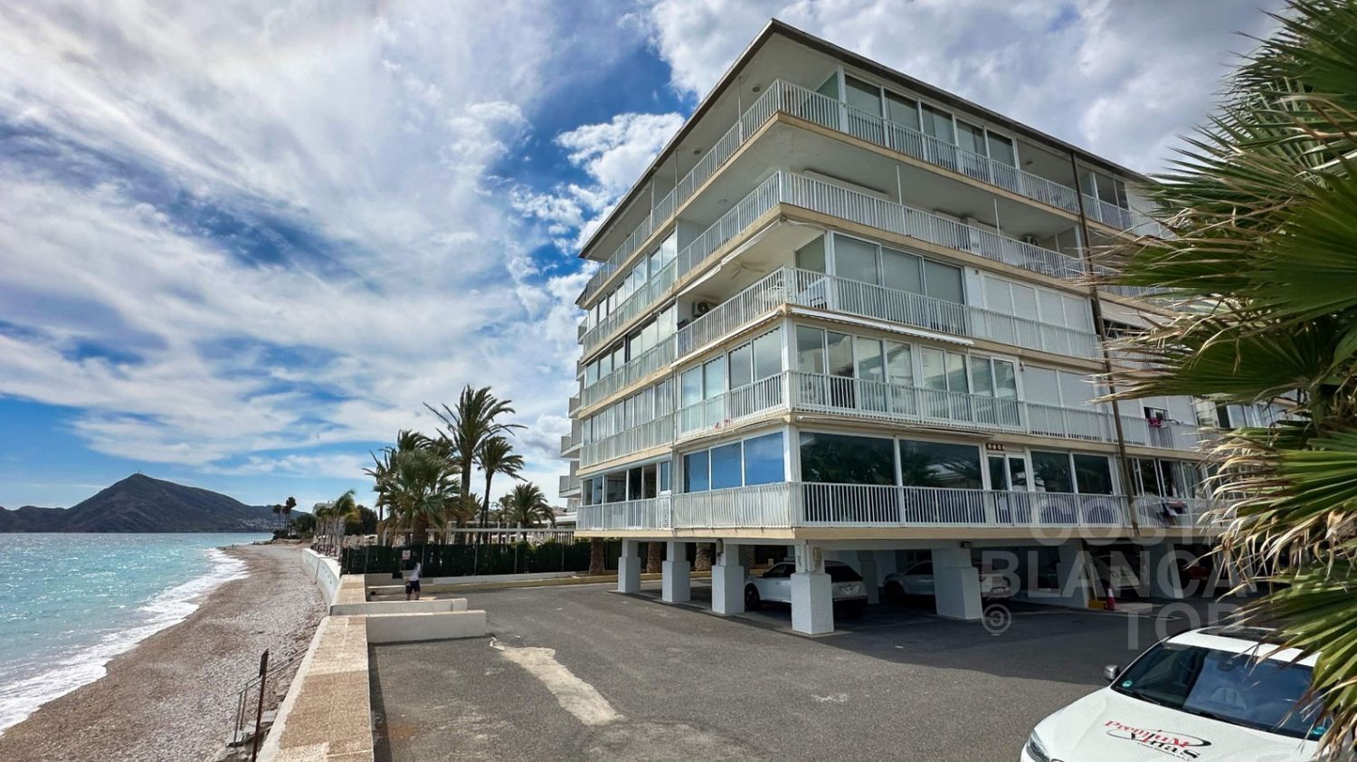 La ubicación del apartamento es inmejorable, con acceso directo a la playa desde el propio edificio, lo que permite disfrutar del mar y del entorno mediterráneo en cualquier momento. Además, cuenta con zona de parking privado y garaje en la vivienda, ofreciendo comodidad y seguridad a sus propietarios.