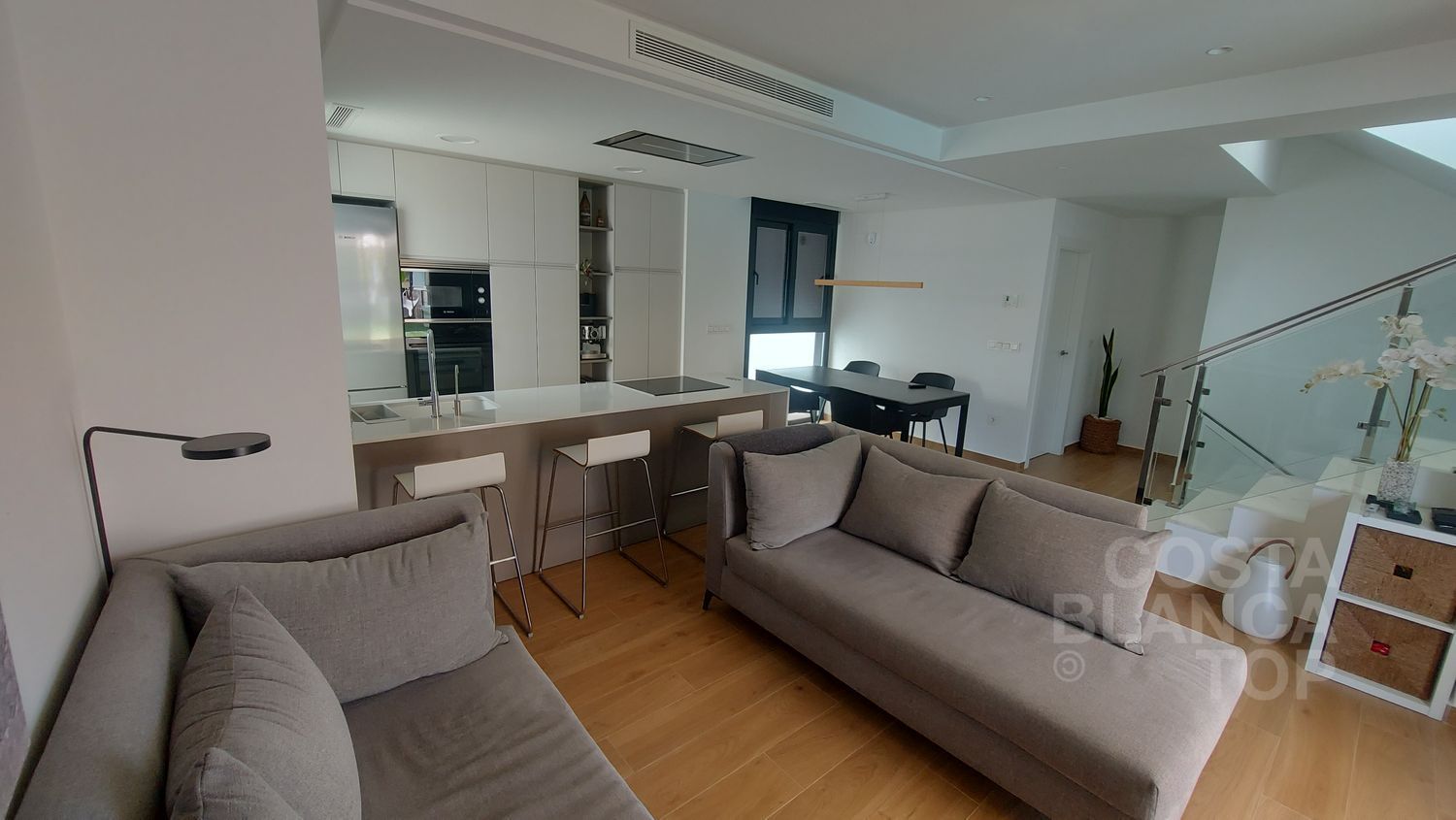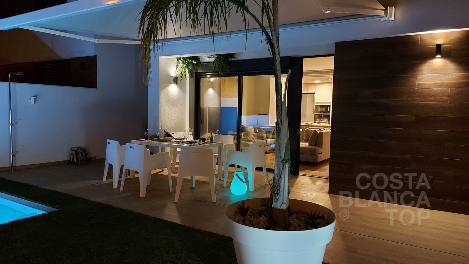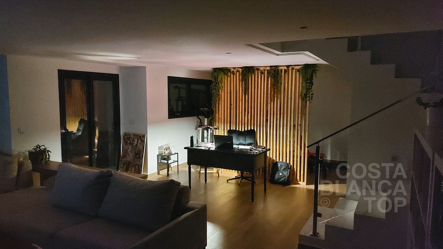 La casa dispone de agua caliente por aerotermia, baños con suelo radiante y toda la iluminación de la casa por leds. La casa dispone de placas solares (10 uds) que abarcan la mayoría del consumo eléctrico. Interruptores para persianas y estores mecanizados. Casa con unas calidades de lujo increibles. Podrás ir caminando (8 minutos) a dos preciosas calas. Parada del tram "Pueblo Espanyol" que te conecta directamente con Alicante o Benidorm. Rápido acceso a la autovía A7 y a la nacional N-332.