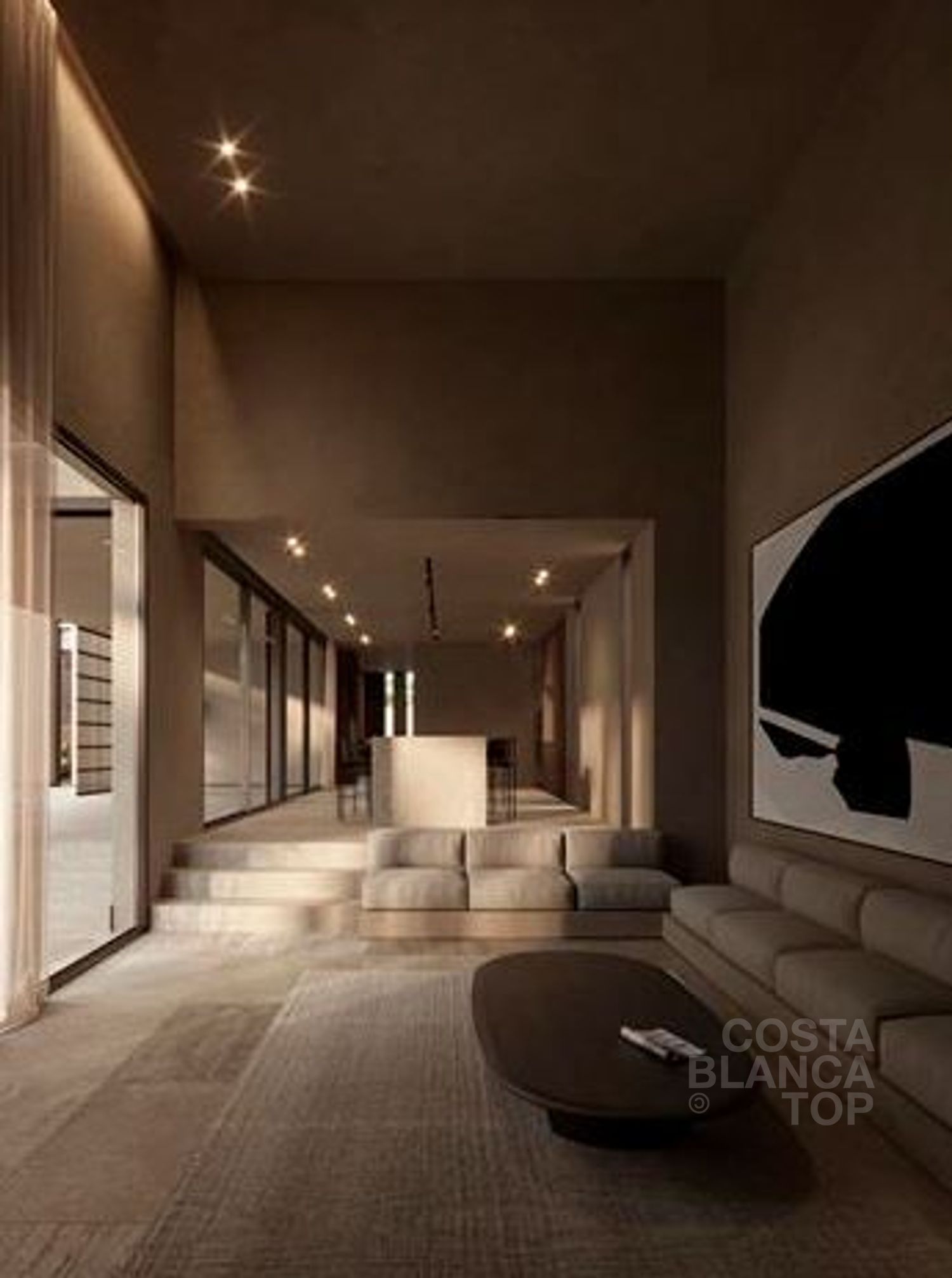 beheko solairua: irekitzatua planta inguruko egitura-laburrarekin darabilen bizi-areto zabala naturalki estalita dago kanpoaldeko espazioetara, entretenimendurako edo Mediterraneo bizimodua disfrutatzeko aproposa.