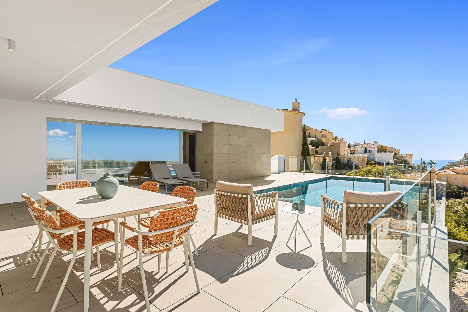 Bienvenue dans une magnifique villa de luxe actuellement en construction, où le design contemporain s'harmonise parfaitement avec les traditions méditerranéennes. Située dans l'enclave résidentielle exclusive de Cumbre del Sol, Alicante, nichée entre les charmantes villes de Jávea et Moraira, cette propriété offre des vues panoramiques sur la mer et près de 300 jours de soleil radieux chaque année.📐 Caractéristiques clés : 4 chambres | 5 salles de bains | 459 m² de surface habitable | 813 m² de terrain✨ Caractéristiques mises en avant : Vie intérieure-extérieure sans couture : Le salon et la salle à manger à aire ouverte s’ouvrent sans effort sur la grande terrasse, mêlant l’intérieur et l’extérieur afin que vous puissiez pleinement profiter du climat méditerranéen.Simplicité sur un seul étage : Tout l’espace de vie principal est réparti sur un seul étage, comprenant trois chambres doubles, dont une spectaculaire suite parentale avec salle de bains attenante privée et accès direct à la terrasse.Espace loisirs personnalisable : Le rez-de-chaussée offre un vaste espace de loisirs avec une grande véranda qui peut être entièrement adaptée à votre style de vie et à vos besoins.Luxe en plein air : Profitez de votre propre piscine privée, d’un magnifique jardin méditerranéen rempli de plantes aromatiques et de vues imprenables sur la mer à l’horizon.Efficacité et confort modernes : La maison est entièrement équipée de chauffage par le sol, d’une pompe à chaleur air-eau, de panneaux solaires et d’une pré-installation pour la recharge de voiture électrique.📍 Emplacement exceptionnel et mode de vie : Cumbre del Sol est un endroit idéal offrant tranquillité et une connectivité facile avec les villes voisines telles que Javea, Moraira et Calpe, ainsi que les aéroports d’Alicante et de Valence. Les résidents de Cumbre del Sol bénéficient d’équipements locaux exceptionnels. Les familles ont accès à la prestigieuse Lady Elizabeth International School, directement au sein de la station. Pour les amateurs de sport, la zone dispose de courts de tennis et de padel de premier ordre, d’infrastructures équestres et de parcours de golf de renommée mondiale à proximité. Les amateurs de navigation et de voile peuvent facilement accéder aux magnifiques marinas et clubs nautiques des villes côtières voisines de Moraira et Jávea.📞 Prêt à faire de cette maison de rêve la vôtre ? Contactez-nous dès aujourd’hui pour plus de détails ou pour organiser une visite !