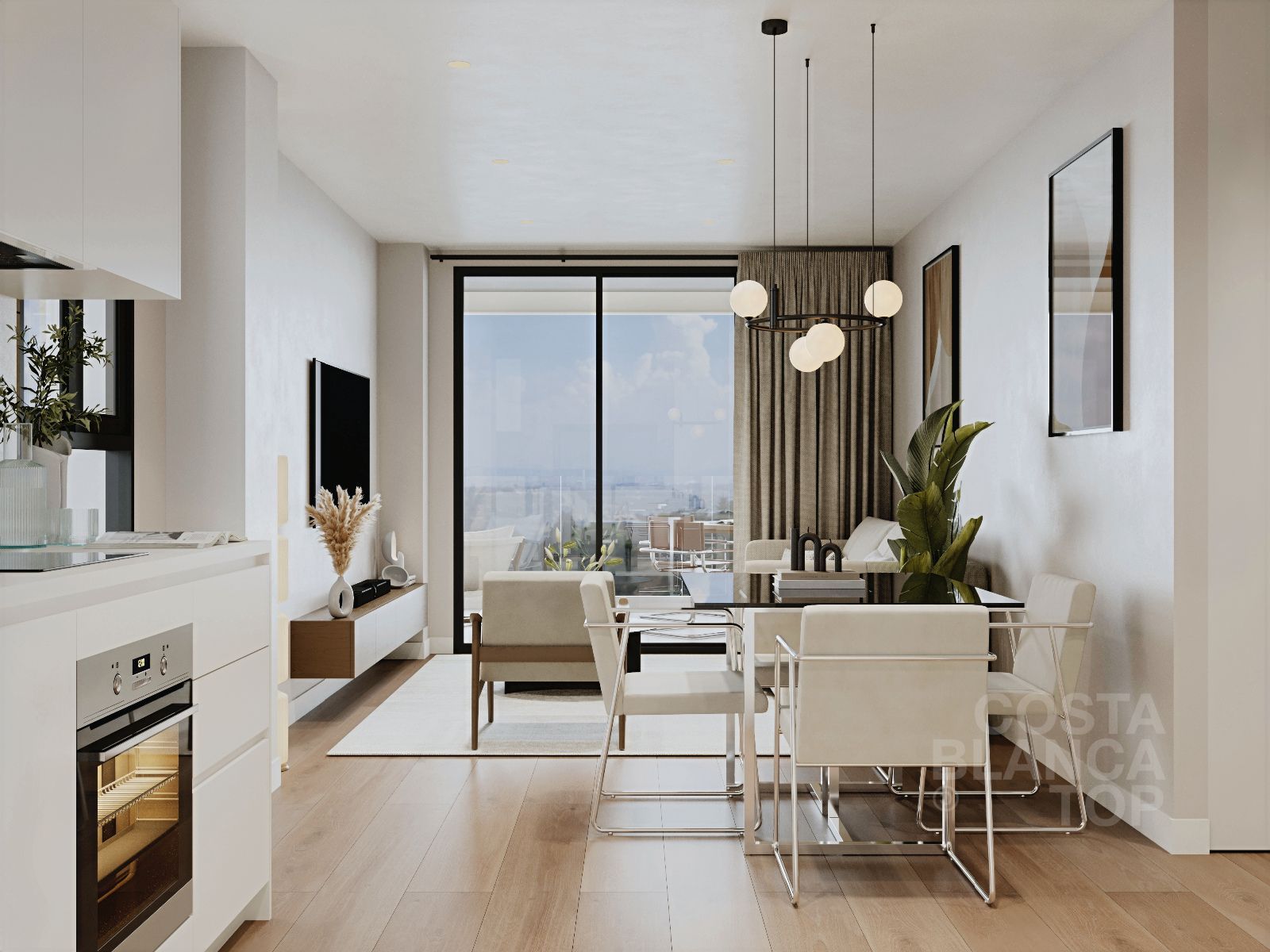 Stel je voor wakker te worden door de zachte Middellandse Zeebries in jouw eigen kustaret. Gelegen in de mooie baai van La Cala de Finestrat in Villajoyosa, biedt dit verfijnde appartement met één slaapkamer een levensstijl van pure rust en moderne elegantie. Stel je voor dat je naar het gouden zand en het kalme, rustgevende water wandelt, gelegen op slechts 800 meter van je deur (houd er rekening mee dat de exacte 800-meter afstand tot de zee niet in de verstrekte bronnen wordt genoemd en je dit detail mogelijk onafhankelijk wilt verifiëren). Deze levendige maar vredige buurt biedt je de perfecte ontsnapping aan de drukte van nabijgelegen Benidorm, terwijl het je tegelijk omringt met heerlijke mediterrane restaurants, essentiële supermarkten en een mooie, toegankelijke stedelijke sfeer. Stap binnen in jouw prachtig ontworpen toevluchtsoord, met meer dan vierenvijftig vierkante meter aan eigentijdse leefruimte die moeiteloos doorstroomt naar een privéterras van elf vierkante meter. Het is de perfecte plek om je ochtendkoffie te drinken of onder de sterren te ontspannen. Elk detail is zorgvuldig ontworpen voor maximaal comfort en gemoedsrust, van de energiezuinige vloerverwarming en slimme huisautomatisering tot de drievoudig beglazing die je in absolute stilte omhult. Het huis pronkt met prachtige afwerkingen, waarbij het merendeel van de materialen afkomstig is van een prestigieuze premium designgroep, waardoor elk centimeter zich luxueus aanvoelt. Buiten je voordeur wacht een wereld van resortachtige ontspanning. Laat je zorgen smelten in het rustgevende spa-gebied, de sauna, de Turkse baden of de jacuzzi. Breng je middagen door met loungen bij de sprongende buitenzwembaden, wandelend door weelderige tuinen of jezelf energiek maken in de indoor gym. Met je eigen toegewezen garageplek, een privéopbergruimte en geavanceerde kenmerken zoals een anti-stroomuitval-systeem, is elk praktische gemak al geregeld. Dit is meer dan een appartement; het is jouw persoonlijke toevluchtsoord, ontworpen voor een leven van moeiteloze harmonie, duurzaamheid en uitzonderlijk comfort. Jouw perfecte kustvakantie wacht.